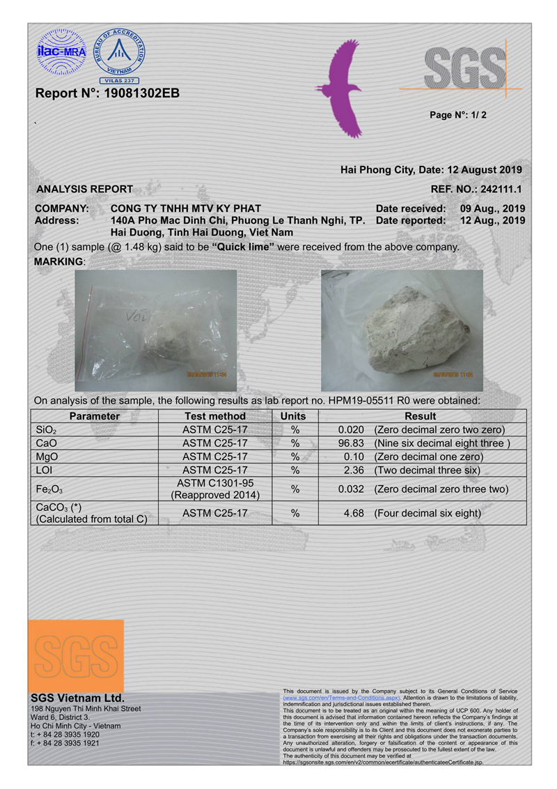 Quicklime manufactured by Ky Phat Company Limited is strictly controlled from the mining step to heating. We choose the purest and highest quality stone quarries that meet our high standard to exploit in our mines..Quicklime is used in a variety of industries, including iron and steel production, paper and pulp production, water and flue gas treatment, and mining.